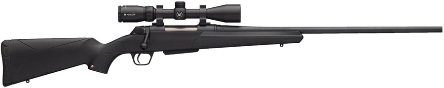 The Winchester XPR is an innovative rifle that meets the performance expectations of today's demanding hunters. It's a rugged, no nonsense game-getter that will put meat in your freezer for many years to come. Most of all, the feature-packed XPR bolt-action rifle embodies the lasting quality you've come to expect from Winchester Repeating Arms. Winchester's M.O.A. Trigger System is the heart of every XPR rifle. The trigger housing and all internal components in the M.O.A trigger are constructed of polished and hardened carbon steel with a blued finish for added durability and corrosion resistance. It also has a two-position safety that's convenient to operate with the thumb of your firing hand. Located just in front of the safety button, the bolt release button allows the action to cycle unfired cartridges while the safety is on. The cocking indicator on the bolt shroud gives you both a tactile and visual reference of the rifle's cocked/uncocked condition. The robust XPR bolt is crafted from chromoly steel barstock and is through-hardened during heat-treatment. The bolt design offers three front locking lugs and a short 60-degree lift for improved scope clearance when cycling. A tough nickel Teflon coating provides smooth operation and added corrosion resistance. The one-piece trigger guard and magazine frame design offers a generous guard opening for use with gloves. The chromoly steel barrel on the XPR rifle is precisely button-rifled to create outstanding accuracy with a wide variety of bullet weights and types. The entire barrel is free-floating to eliminate any accuracy robbing pressure points. The XPR also features a drilled & tapped chromoly steel receiver, synthetic stock with an Inflex Technology recoil pad, and a detachable single stack box magazine. This model comes with a Vortex Crossfire II 3-9x40 with BDC reticle scope mounted with full VIP warranty from Vortex plus Weaver style rings and bases.| Action | Bolt |