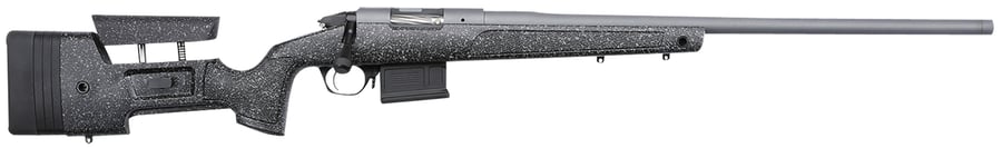 The HMR Pro Rifle uses the Bergara Premier Action which is designed as a two-lug system that features a separate floating bolt head to ensure contact with the lug abutments in the action. It also features a cone-shaped bolt nose for smooth feeding of the cartridge, and a spring-loaded sliding plate extractor. The one-piece bolt body is stainless steel with a pad at the rear to accept the threaded-in bolt handle. The bolt head, the non-rotating gas shield, the bolt handle, and bolt shroud are fully Nitrided for extreme durability, as well as its self-lubricating properties. The two-position safety is part of the trigger assembly, which in the HMR Pro rifle is a TriggerTech Frictionless Release Technology. One great feature of this combination allows the bolt handle not to lock in the closed position, which in turn allows the rifle to be unloaded while in the safe position. This .308 Winchester model has a 20" threaded barrel which is also compatible with Remington 700 style rings and bases. It has a detachable magazine.| Action | Bolt |