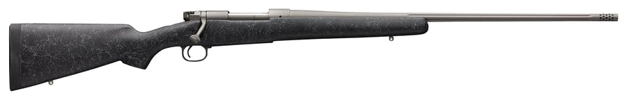 The Model 70 since 1936 it's been the benchmark against which every other bolt-action rifle is measured. It still has the famous 3-position safety which is convenient to operate with the thumb of your firing hand, lifting the firing pin away from the sear. The forged steel receiver starts from a solid block of steel. The bottom profile of this receiver is flat to offer greater surface area for bedding. It is bedded with a two-part epoxy in two places, at the front and rear to keep things from shifting around inside the stock during firing. The classic Controlled Round Feed (CRF) bolt design is a massive claw extractor that smoothly slips onto and secures about one-quarter of the base of the cartridge. This exerts full control over the cartridge from the time it leaves the magazine, as it enters the chamber, gripping tightly until the cartridge is fully ejected. This design also allows an unfired cartridge to be extracted even if it is not yet fully chambered. The M.O.A. Trigger System is the most precise three-lever trigger system in the world and an improved fit and finish and enhanced accuracy to go along with its classic Pre-'64 controlled round feeding. A blade-type ejector gives you full control when ejecting a fired case. Its free-floating barrel is button rifled in a process that assures superior accuracy and durability. This Extreme model features a tungsten Cerakote gray metal finish and Bell & Carson stock with sculpted cheek piece.| Action | Bolt |