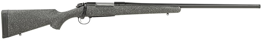 The B-14 Ridge rifle features a molded synthetic stock made of glass fiber reinforced polymer. As with the entire B-14 Series, the Ridge brings Bergara Barrel accuracy to a line of hunting rifles that is affordable to serious big-game hunters. The Bergara barrel on this rifle is for hunting whatever your heart desires are complemented by their own super-smooth B-14 Action, which is a two-lug system with a sliding plate extractor and a coned bolt nose and breech to ensure a smooth feeding and extraction of the cartridge. It s also outfitted with a Bergara curved trigger we designed to guarantee a crisp, clean pull every time you fire the rifle. The trigger comes set at about three pounds. The Ridge is available with a hinged floor plate. This model is chambered for 7mm Remington Magnum and has been factory drilled and tapped to fit Remington 700 style rings and bases.